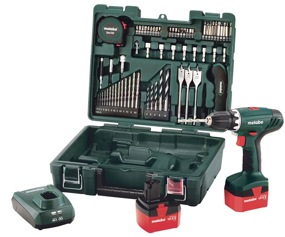 Аккумуляторный винтоверт Metabo BS 12 NICD Set (Метабо БС 12 НИЦД Сет) с набором инструментов, легкий, компактный для универсального применения.