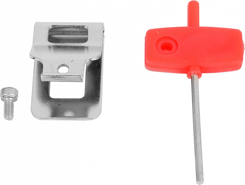 - Съемная скоба, позволяющая закрепить, например, на ремне, располагается в нижней части рукоятки у самого аккумулятора