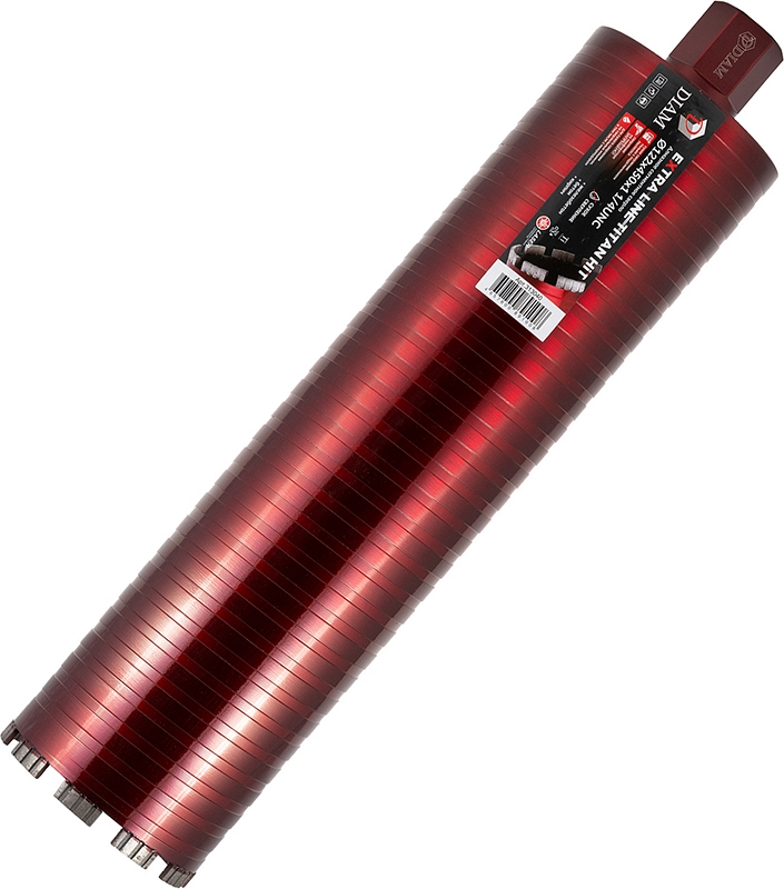 Алмазное сегментное сверло для сухого сверления с микроударом Diam Extra Line Titan Hit 122 мм (Диам Экстра Лайн Титан Хит 122 мм) предназначено для сухого алмазного бурения, в том числе и с микроударом, отверстий Ø 122 мм на сверлильных машинах / дрелях с микроударом и без микроудара в бетоне, железобетоне (армированном бетоне), бетонных строительных блоках, кирпиче, без подачи воды. Незаменимо в случаях, когда работы проходят в помещении, либо в ситуациях когда недопустимо загрязнение объекта, нет доступа к воде и иных ситуациях, предполагающих отсутствие охлаждения.