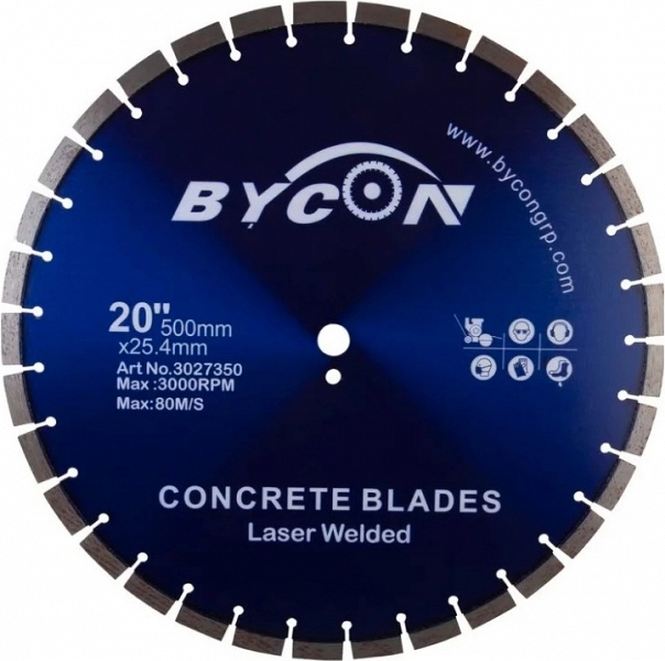 Алмазный диск Bycon Laser Uni-15 500 мм (Байкон Лазер Уни-15 500 мм) применяются, как правило, на бензорезах, электрических резчиках, камнерезных станках, стенорезных машинах, швонарезчиках. Обрабатываемые материалы: бетон, железобетон, гранит, природный камень, черепица, клинкерный кирпич (клинкер) и другие материалы.