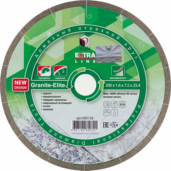 Преимущества алмазного отрезного круга Diam Extra Line 1A1R Корона Granite-Elite 200 мм: