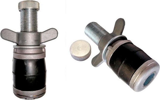 - Уплотнительное кольцо из резины между 2-мя блинами на штоке с резьбой и прижимом