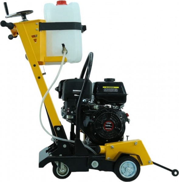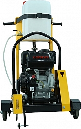 - Бензиновый двигатель Loncin G390F обеспечивает необходимую автономность работ в полевых условиях: в обычном режиме работы при глубине прямоугольного реза 6 см и ширине 1 см достигается скорость 1 м/мин по асфальту и 0,5 м/мин по бетону