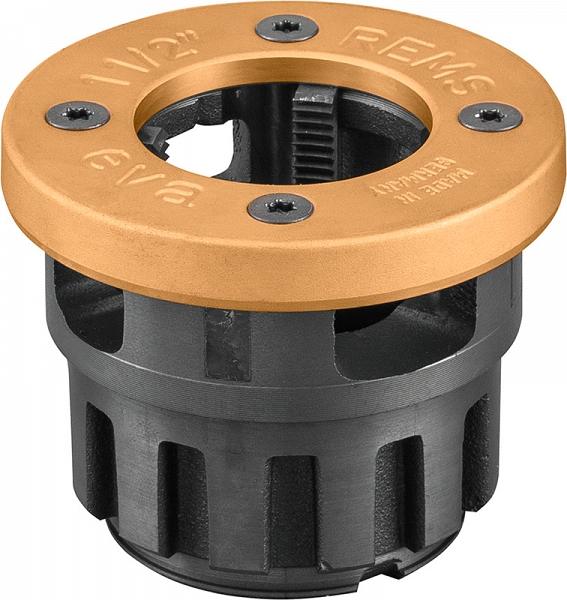 Быстросменная резьбонарезная головка Rems Eva R 1 1/2" LH (Ремс Ева Р 1 1/2" ЛХ) предназначена для нарезки левой трубной конической резьбы R LH (ISO 7-1, EN 10226 (DIN 2999, BSPT)) на стальных трубах Ø 1 1/2" с применением ручных и электрических резьбонарезных трубных клуппов Ева, Амиго, Амиго 2, Амиго 2 Компакт.