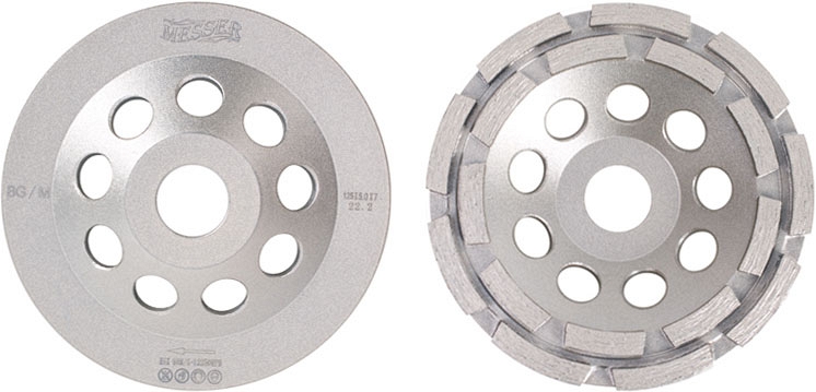 Чашка алмазная шлифовальная двухрядная Messer BG/M (Мессер БГ/М) предназначена для шлифовки бетона, гранита, мрамора на ручном электроинструменте.