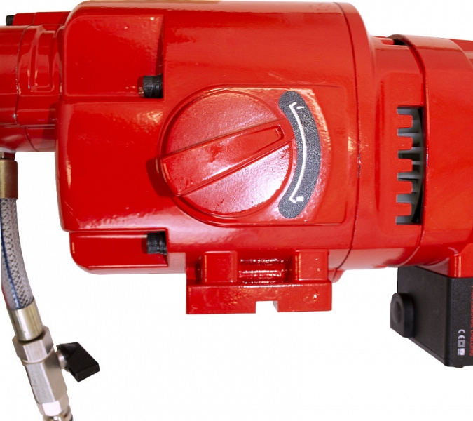 - Две скорости: надежный двухскоростной редуктор, с помощью которого можно подобрать оптимальную скорость сверления для каждого диаметра алмазной коронки
