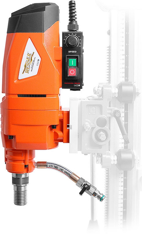 Двигатель алмазного бурения Messer DM-180 (Мессер ДМ-180) для сверления на стойке, способен эффективно работать с алмазными коронками Ø до 182 мм.