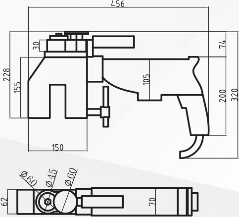 - Компактная конструкция для обработки труб в узком пространстве