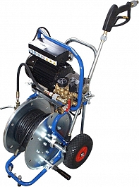 Гидродинамическая машина для прочистки канализационных труб Rioned MiniJet (Рионед МиниДжет) – профессиональная электрическая машина для прочистки канализации Ø 25 – 125 мм, а также для очистки поверхностей зданий, тротуаров, машин и т.д.
