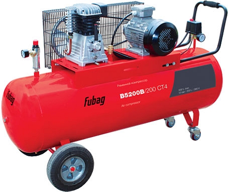 Надежный, мощный, высокопроизводительный, двухцилиндровый, одноступенчатый, ременной, воздушный компрессор Fubag B5200В/200 СT4 (Фубаг Б5200Б/200 СT4) может работать практически со всеми пневмоинструментами, отличный выбор для обеспечения сжатым воздухом гаражных хозяйств, автопарков, строительных площадок или среднего производства.
