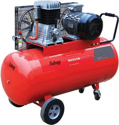 Надежный, мощный, высокопроизводительный, двухцилиндровый, одноступенчатый, ременной, воздушный компрессор Fubag B6800В/270 СT7,5 (Фубаг Б6800Б/270 СT7,5) может работать практически со всеми пневмоинструментами, отличный выбор для обеспечения сжатым воздухом гаражных хозяйств, автопарков, строительных площадок или среднего производства.