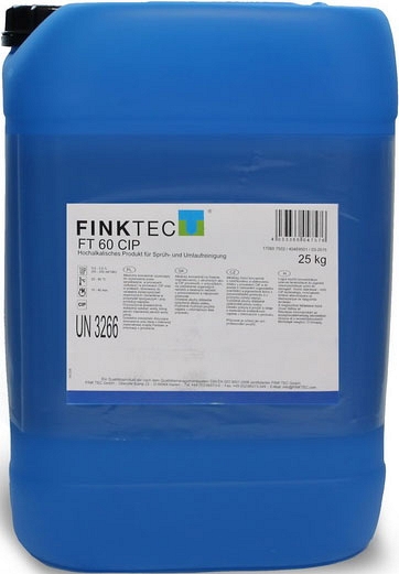 Сильное концентрированное щелочное моющее средство Finktec FT 60 CIP (Финктек ФТ 60 ЦИП) – прозрачная, бесцветная жидкость, работающая в циркулирующих системах и при нанесении распыленной струей, великолепно удаляет жир и белок, стабильна при высокой степени жесткости воды, без фосфатов. Применяется для удаления органических отложений в пищевой промышленности.