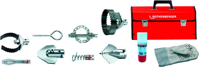 Набор насадок для прочистки труб Rothenberger L 22 мм (Ротенбергер Л 22 мм) предназначен для электрических прочистных машин R 600 / 650 / 750 / 80, а также других производителей.