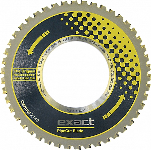 Отрезной диск по металлу для трубореза Exact Cermet X140 (Экзакт Кермет Икс140) особенно подходит для резки труб из нержавеющей и кислотостойкой стали, а также стали, меди, пластика и металлопластика. Предназначен для электрических труборезов Exact PipeCut 170, 170E, 220E, 200, 360.