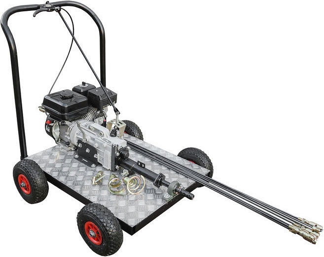 Модель снята с производства! Прочистная машина бензиновая Gerat Mamont (Герат Мамонт) бензиновый прочистной штанговый аппарат для прочистки прямых участков канализации между колодцами, промышленной канализации и дренажных / ливневых труб Ø 75 – 600 мм, длиной до 150 м. Применяется на химических, нефтеперегонных и пищевых предприятиях, в коммунальной инфраструктуре, работе водоканалов и аварийных бригад.