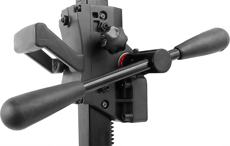 Прямая стойка для алмазного бурения Messer 180P (Мессер 180П) предназначена для точного позиционирования двигателя алмазного бурения Messer DM180-1 при сверлении отверстий Ø до 230 мм в бетоне, железобетоне, камне, кирпиче и прочих материалах под прямым углом с помощью алмазных коронок.