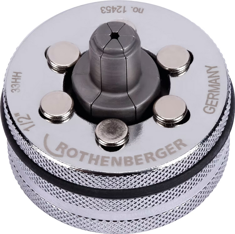 Расширительная головка Rothenberger Rolock 1/2"×1,2 мм (Ротенбергер Ролок 1/2"×1,2 мм) – клепаная экспандерная насадка для расширения мягких и полутвердых медных, мягких алюминиевых, мягких прецизионных и инструментальных стальных, мягких нержавеющих стальных труб Ø 1/2", толщиной стенки до 1,2 мм, для изготовления точных муфтовых соединений в соответствии с нормами DVGW / DIN / ГОСТ и Gas de France.