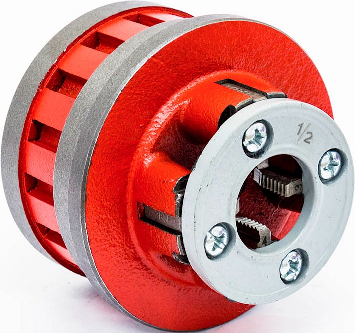 Резьбонарезная головка для ручного клуппа Kern BSPT R HSS 1/2" (Керн БСПТ Р ХСС 1/2") предназначена для нарезания правой конической трубной резьбы BSPT R на стальных трубах Ø 1/2" с помощью ручных резьбонарезных клуппов Kern, а также других производителей.