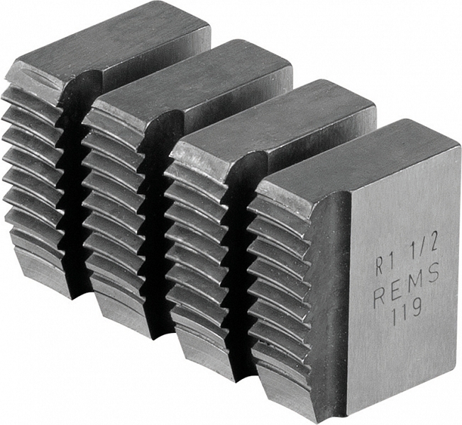 Резьбонарезные плашки Rems R 1 1/2" (Ремс Р 1 1/2") предназначены для нарезки правой трубной конической резьбы R (ISO 7-1, EN 10226 (DIN 2999, BSPT)) на стальных трубах Ø 1 1/2" с применением ручных и электрических резьбонарезных трубных клуппов Ева, Амиго, Амиго 2, Амиго 2 Компакт.