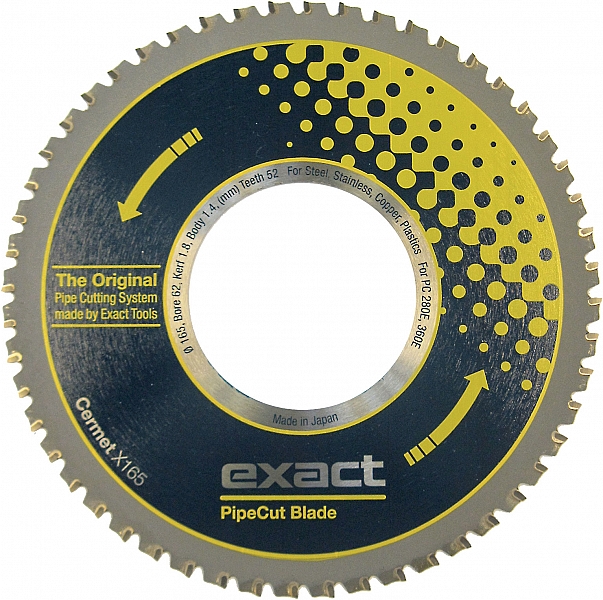 Режущий диск на труборез Exact Cermet X165 (Экзакт Кермет Икс165) особенно подходит для резки труб из нержавеющей и кислотостойкой стали, а также стали, меди, пластика и металлопластика. Предназначен для электрических труборезов Exact PipeCut 280E, 360E.