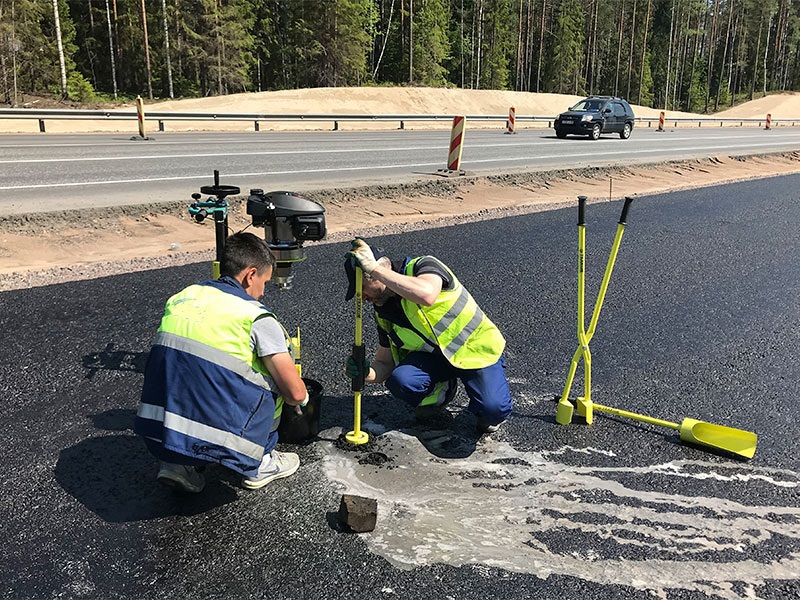 - Заделка, образующихся после высверливания кернов отверстий, производится холодным асфальтом или горячей асфальтобетонной смесью с их послойной укладкой и уплотнением