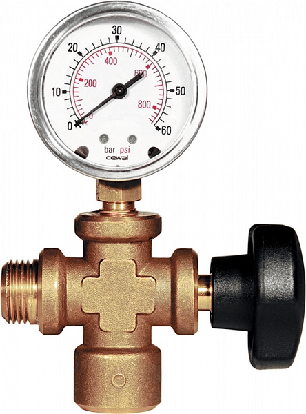 | 115110 R | Соединительный элемент с манометром и запорным вентилем (p ≤ 6 МПа / 60 бар / 870 фкд) |