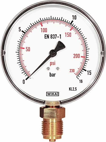 | 115045 | Манометр с точной шкалой, на 1,6 МПа / 16 бар / 232 фкд, для считывания изменений давления от 0,01 МПа / 0,1 бар / 1,45 фкд согласно DIN 1988 |
