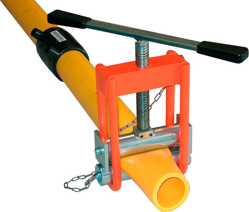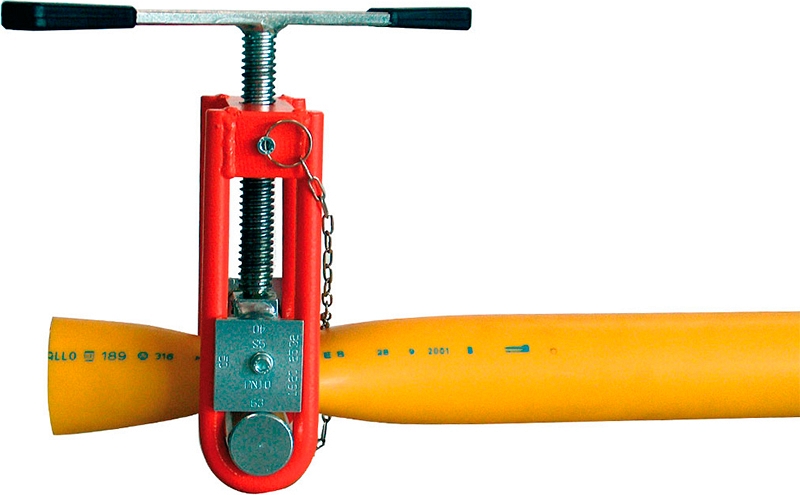 - Простой и быстрый в применении используется для перекрытия газа или воды в полиэтиленовых трубах