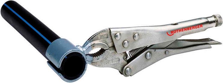 Ручной зажим для пластиковых труб Rothenberger 63 мм (Ротенбергер 63 мм) предназначен для фиксации трубы Ø 63 мм перед и во время процесса сварки и для возвращения формы трубы из полиэтилена (ПЭ) после передавливания.