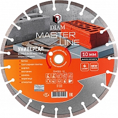 Сегментный алмазный круг Diam Master Line 1A1RSS Универсал 350 мм (Диам Мастер Лайн 1А1РСС Универсал 350 мм) – специальный алмазный отрезной диск с лазерной сваркой сегментов для сухой и мокрой резки бетона, тротуарной плитки, кирпича, черепицы, песчаника, природного и искусственного камня, строительных материалов общего назначения на бензорезах, электрических резчиках, камнерезных станках, стенорезных машинах, швонарезчиках, с подачей и без подачи воды.