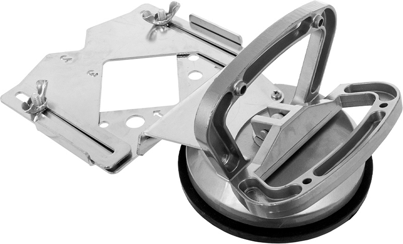 - Прочный алюминий: корпус присоски из прочного алюминия, выдерживает вес до 50 кг, возможно использовать как присоску для переноски плитки