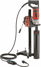 | 182001 R | Сверлильная стойка D. Устойчивая стойка для сверления коронками до Ø 250 мм, с бесступенчатым отклонением до 45°, шкалой глубины. Для машин с посадочной шейкой Ø 60 мм. В комплекте: Г-образный ключ SW 6, рожковые ключи SW 19, SW 30, проставка для больших диаметров, уплотнительное кольцо и башмак для вакуумного крепления, 2 распорных дюбеля М12, 10 дюбелей М12, ударник для забивки дюбелей, рифленая анкерная шпилька М12 × 65 с гайкой и шайбой |