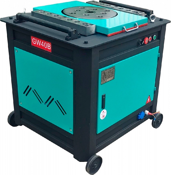 Станок для гибки арматуры Giks GW40B (Гикс ГВ40Б) – гибочная машина для загибания низкоуглеродистой стали, включая трубы, листовую сталь, прокатные уголки и арматурные стержни в различных формах на строительной площадке и на производстве.