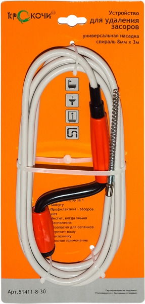 Цена и технические характеристики троса для прочистки канализационных труб Крокочист 8 мм × 3 м: