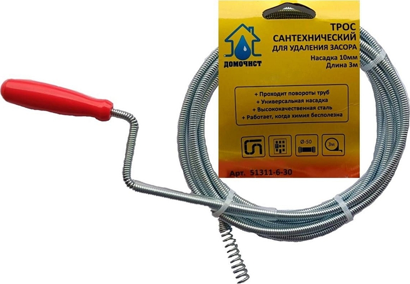 Преимущества троса сантехнического для удаления засоров в трубах Домочист 6 мм × 3 м: