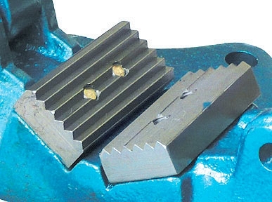 - Совместимые зубцы трубных тисков Rex V0 и V1 надежно закрепляют мягкие трубы без нанесения повреждений
