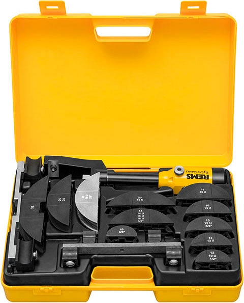 - Rems Гидро-Свинг Сет. Масляногидравлический ручной трубогиб Ø 10 – 32 мм, 3/8" – 7/8", до 90°. Мягкие медные трубы Ø 10 – 22 мм, 3/8" – 7/8", s ≤ 1 мм, мягкие медные трубы с оболочкой Ø 10 – 18 мм, 3/8" – 5/8", s ≤ 1 мм, трубы систем запрессовки из нержавеющей никелевой стали Ø 12 – 22 мм, s ≤ 1,2 мм, мягкой углеродистой стали в оболочке Ø 12 – 18 мм, s ≤ 1,2 мм, мягкие трубы из прецизионной стали Ø 10 – 22 мм, s ≤ 1,5 мм, композитные трубы Ø 14 – 32 мм. До Ø 32 мм с приводом, гибочными сегментами, 2 опорами скользящих роликов Ø 10 – 26 мм и Ø 32 мм со скользящими роликами, в прочном кофре.