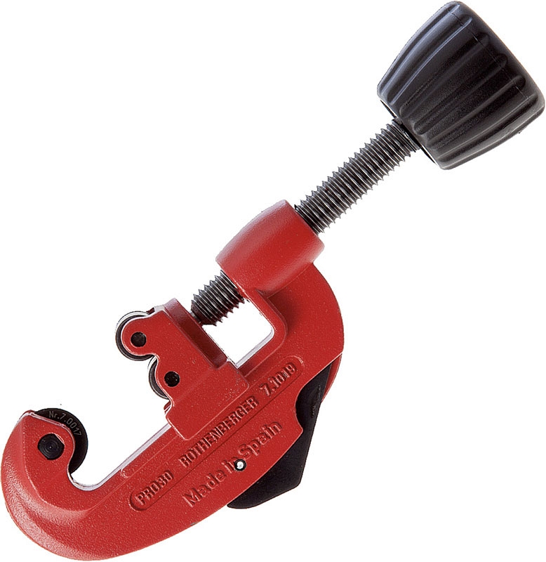 Труборез ручной для медных труб Rothenberger Tube Cutter 30 Pro (Ротенбергер Тюб Каттер 30 Про) предназначен для резки медных, латунных, алюминиевых и тонкостенных стальных труб Ø 3 – 30 мм (1/8" – 1 1/8"), толщиной стенки до 3 мм.