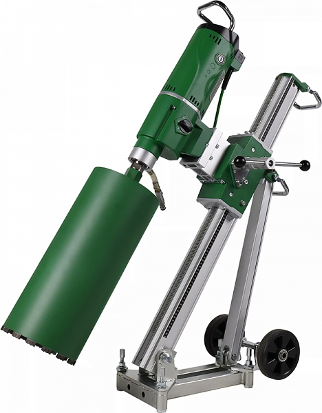 Установка алмазного бурения Bycon Pro-500 (Байкон Про-500) предназначена для сверления отверстий Ø до 502 мм в бетоне, железобетоне, кирпиче, камне и других материалах, под углом до 45°, с подачей воды, для профессионального использования.
