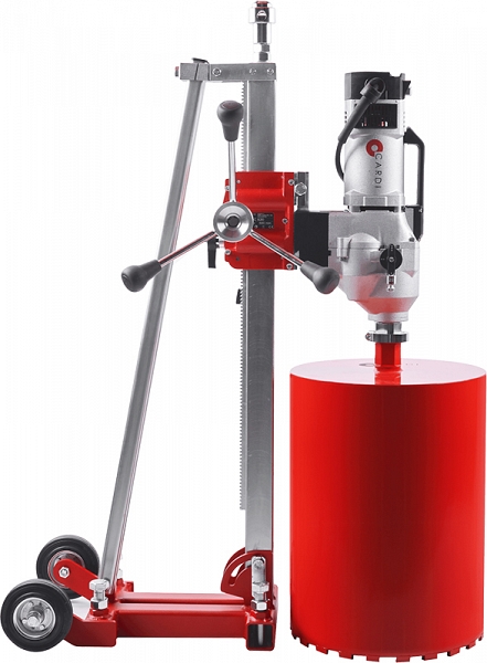 Установка алмазного бурения Cardi 400 (Карди 400) предназначена для сверления отверстий в армированном бетоне, камне, кирпиче и прочих материалах Ø 30 – 400 мм под углом 0° – 75° с подачей воды.