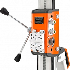 – Защищена боковыми пластиковыми полосками, предохраняющими от повреждений при транспортировке и царапин при снятии алмазной коронки ключом - Рукоятка подачи: