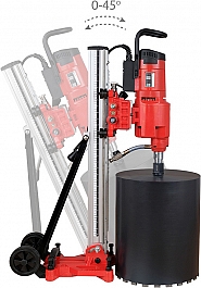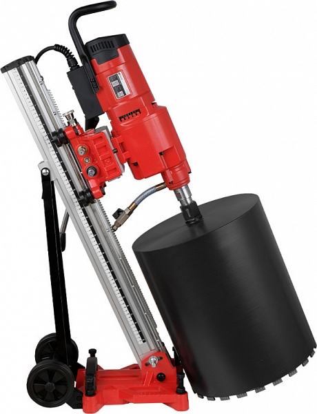 Установка для алмазного бурения Diam ML-350/2AEDC (Диам МЛ-350/2АЕДЦ) – мощная двухскоростная сверлильная машина с наклонной стойкой для сверления отверстий в бетоне и железобетоне Ø 20 – 300 мм, кирпичной кладке и других строительных материалах Ø 20 – 350 мм, под углом до 45°, с подачей воды.