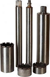 - Использование сменных модулей двух типоразмеров 56 и 200 мм (длина сменного модуля) позволяет восстановить изношенную и прошедшую несколько восстановлений алмазную коронку до первоначальной длины 450 мм
